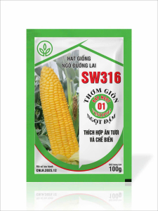Giống ngô Đường lai SW316 có độ đồng đều và tỷ lệ bắp loại I cao, chống đổ khá, ít nhiễm sâu bệnh. Thời gian sinh trưởng từ khi gieo đến thu hoạch bắp tươi từ 80 – 90 ngày (tuỳ vụ), năng suất tiềm năng cao (bắp tươi 12 – 16 tấn/ha). Chất lượng ngon: vỏ lụa mỏng, ngọt, dòn, thơm.